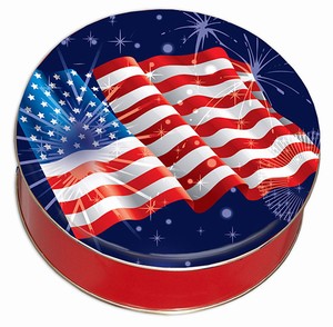 Beautiful Fireworks. Perfect for your 4th of July Festivities. This tin comes filled with our Cookie Cups With Pecans.